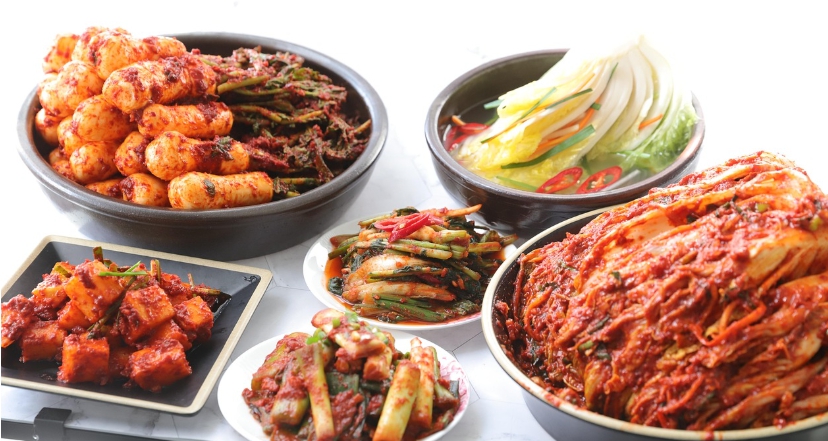 - 김치는 유산균이 풍부해 장내 유익균을 증가시키고, 소화 기능을 돕습니다.